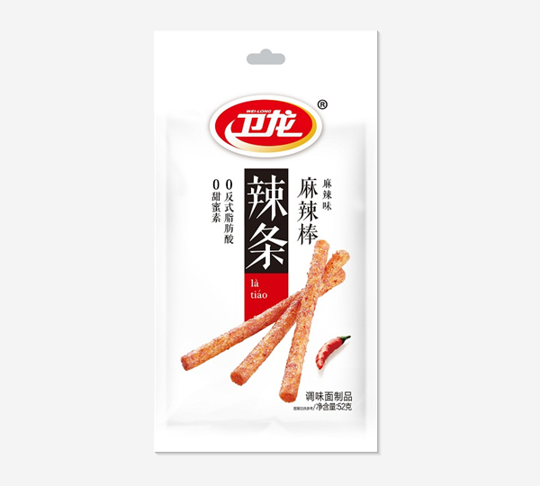 精选优质小麦,品质稳定,麦香浓郁; 一级大豆油,味道纯正,颜色透亮; 0反式脂肪酸 、0甜蜜素; 挤压熟制,非油炸,蓬松劲道,每一口都软糯多汁; 爱辣之选,麻辣过瘾。